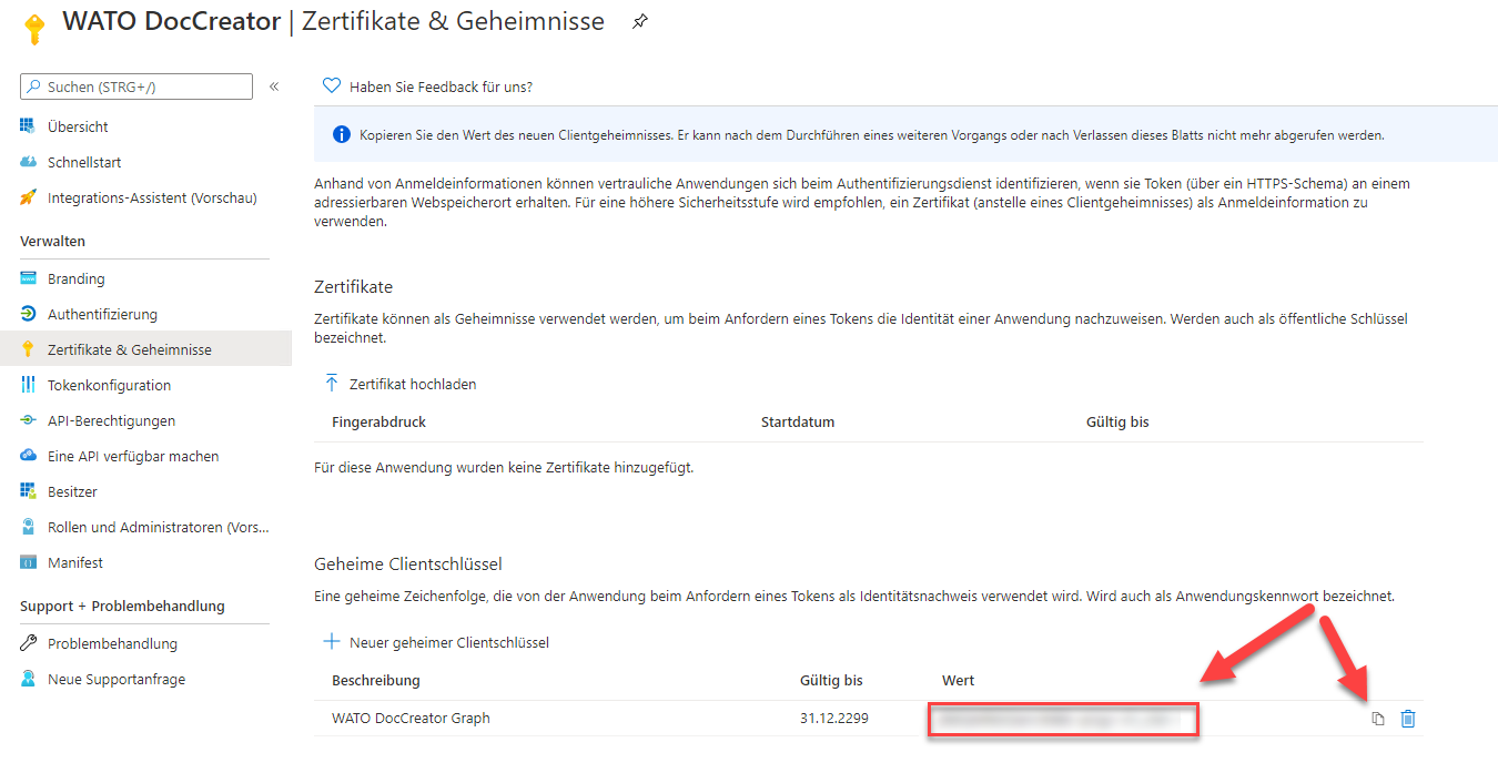 Geheimer Key: geheimer Clientschlüssel (Secret Key)