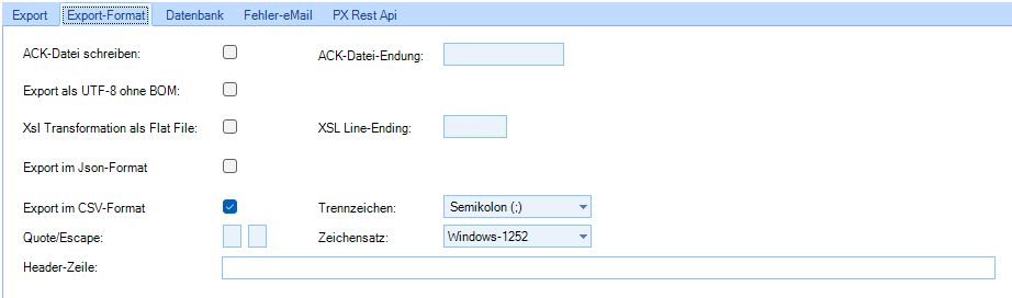 Export im CSV-Format: diese Einstellung kann gesetzt werden, wenn der Export im CSV-Format erfolgen soll