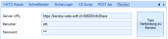 Über den Button «Test Verbindung zu Kendox» kann ein Verbindungstest durchgeführt werden