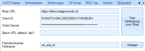 Button «Test Verbindung zum Shop»: über diesen Button kann ein Verbindungstest zum Shop durchgeführt werden