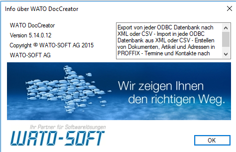 📖 HandbuchHauptdialogInfoInfoMit Klick auf den Ribbon-Menü-Punkt «Info» wird ein Dialog mit Informationen zum Programm angezeigt