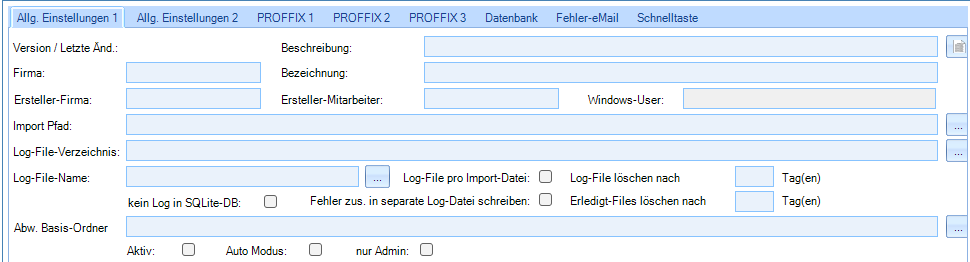 Log-File löschen nach n Tagen: hier kann festgelegt werden, nach wieviel Tagen Log-Dateien dieser Import-Definition gelöscht werden sollen. Man kann nur einen Wert eintragen, wenn man das Flag «Log-File pro Import-Datei» gesetzt hat