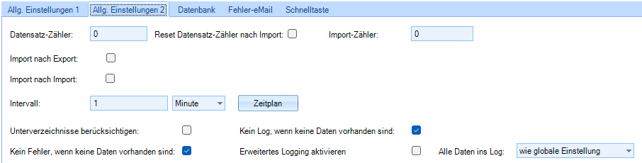 Alle Daten ins Log: Übersteuerung der globalen Einstellung, ob bei einem Fehler während des Imports alle Werte der aktuellen Datenzeile mit ins Log geschrieben werden sollen.