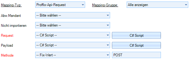Über das Mapping «Proffix-Api-Request» lässt sich eine Import-Definition anlegen, die per PX Rest Api einen beliebigen Requests (POST, PUT, PATCH, DELETE) ausführt.