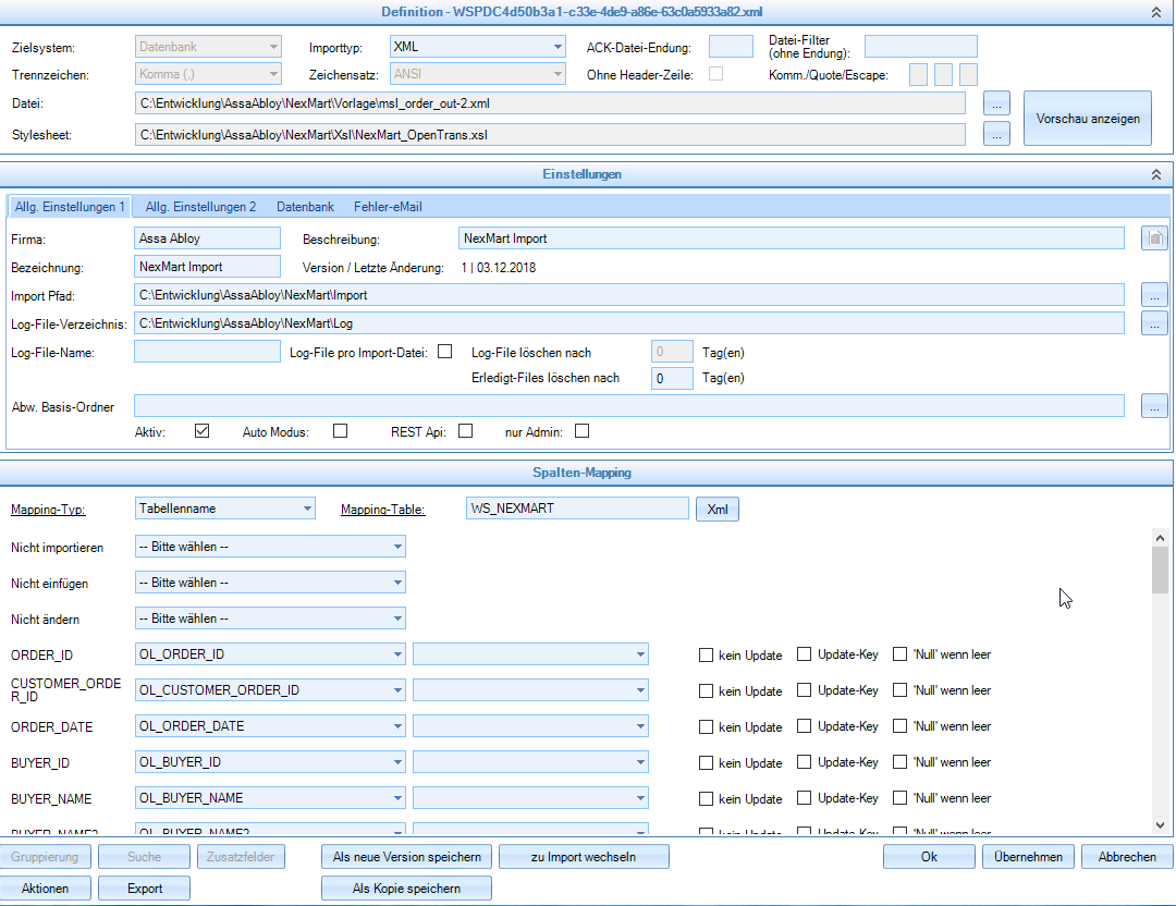 - Mapping der zu importierenden Daten auf die entsprechenden Spalten/Properties