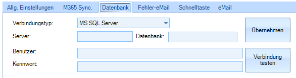 HINWEIS: über den «Übernehmen» Button können die in den globalen Einstellungen festgelegten Datenbank Verbindungsdaten in die Definition übernommen werden