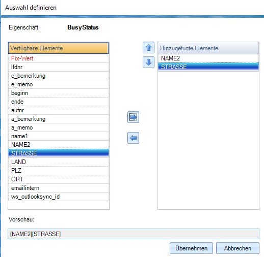 Nach Auswahl eines Outlook-Typs wird das entsprechende Mapping geladen